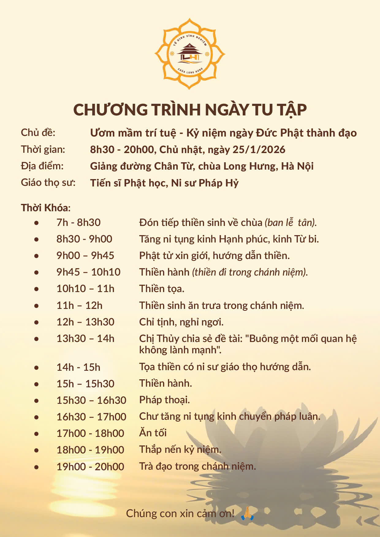 🙏 Kính chúc quý Phật tử thân tâm an lạc, trí tuệ tăng trưởng.